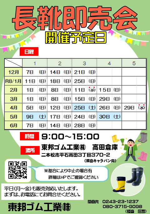 お客様のご要望もあり、今後は、一部の土曜日や🎌祝祭日にも販売会を開催いたします。